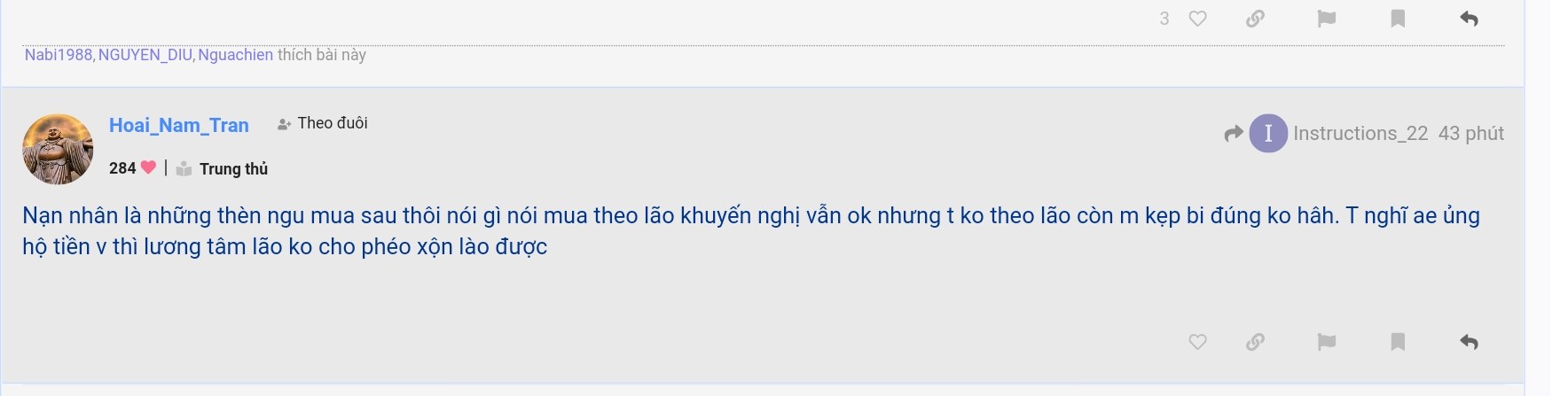 Các bác yên tâm e đã cắm cờ và báo cáo admin gruop rồi, vài ngày nữa sẽ khóa mõm 2 con chym lợn ấy thui Hoài nam… và Intrus…