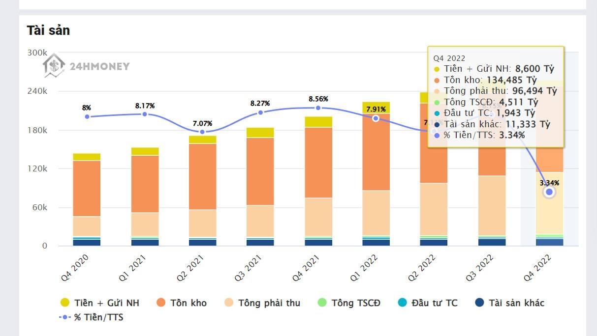 Tuy nhiên lượng tiền mặt trên tổng tài sản của NVL hiện đang khá thấp về mức 3,34% so với giai đoạn trước là gần 10%. Khó có thể giúp NVL có thể dễ dàng trong việc thanh toán trả nợ.